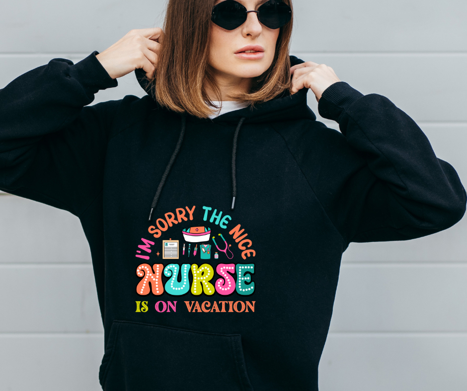 “Get ready to bring some humor to the hospital hallways! This high-quality PNG design features the witty phrase: ‘I’m Sorry, The Nice Nurse is on Vacation.’ It’s the perfect blend of sarcasm and professional pride for nurses who work hard and have a great sense of humor.”